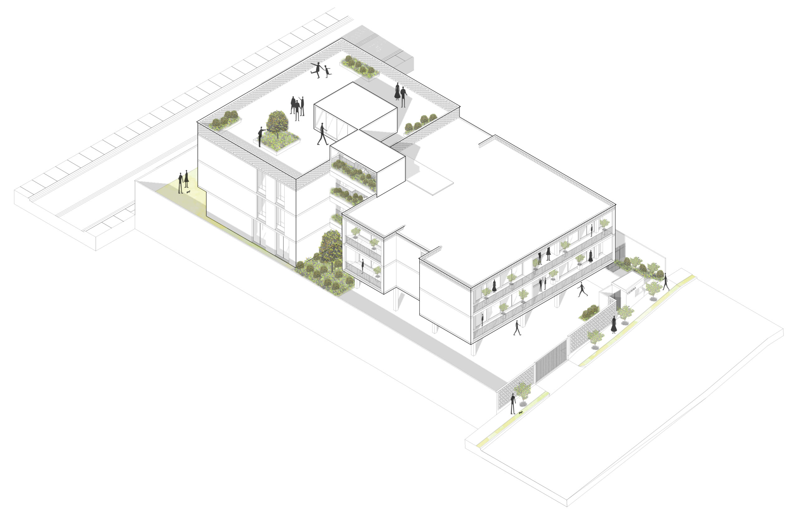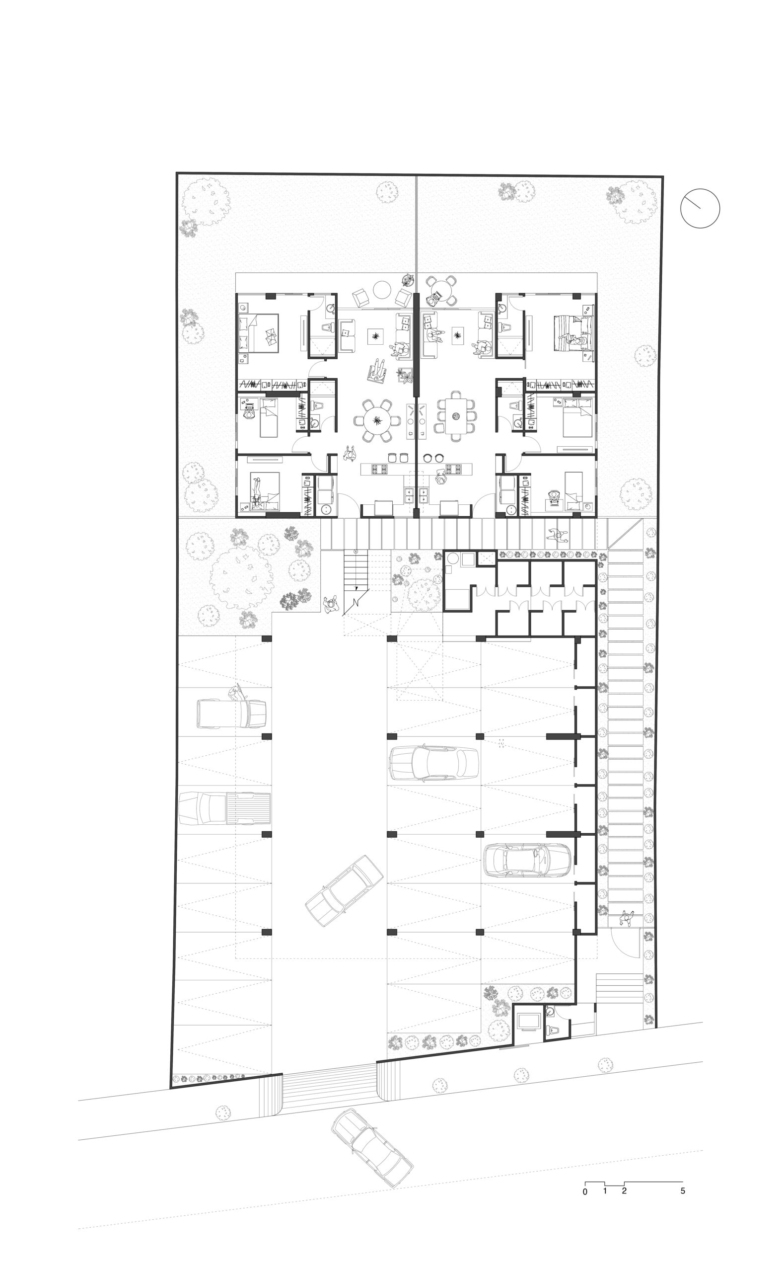 El proyecto se implanta en Quito, en un lote con frente a dos vías y en una zona suburbana en crecimiento ubicada en el valle oriental de la ciudad. Por esto, se plantea proyectar un edificio residencial de densidad media, de solo tres niveles de altura y de tipología aislada debido a la normativa del sector. Esto genera un bajo impacto en el sitio y de alguna manera marca las pautas de transición entre la vivienda suburbana de tipología aislada y un edificio de departamentos. Por esta razón el proyecto busca responder a tres cosas fundamentales en su ejecución.